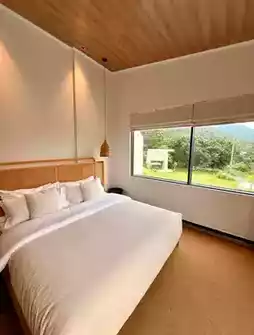 ✨ Snagged the "Standalone Wild Luxury Duplex Room"! Minimalist wooden style + floor-to-ceiling windows facing mountain views⛰️. Soaking in the bathtub at night while enjoying the city lights, playing cards, and chatting with friends—so chill~