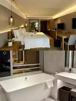The rooms are very clean and spacious, and you can get a good rest. Sitting on the balcony and looking out at the courtyard is so relaxing! The bedding is comfortable, and the bathroom is separate from the shower. The corridors are very stylish and great for taking photos.
