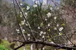 White plum blossoms are the most common. The thin branches stand against the wind and snow, supporting the hope of winter. The delicate flowers emit a faint fragrance. From a distance, they look like stars in the sky. There is a stele next to the tree that reads: "White plum blossoms have four virtues: they are rare, not dense; old, not tender; thin, not fat; and budding, not blooming." No wonder this lonely flower blooms in the cold winter, unlike the peach and apricot blossoms.