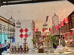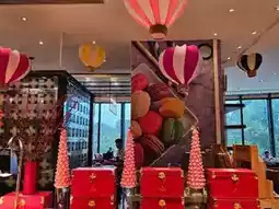 The elegant lobby is decorated with traditional red lanterns, creating a unique atmosphere. The combination of modern luxury and Chinese traditions is impressive at first sight.