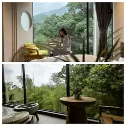 The guest rooms are designed with a natural feel, with wooden furniture and warm-colored fabrics creating a cozy atmosphere. The rooms are also equipped with a children's play area, where children can play to their heart's content, while adults can lie on the soft sofa, hold a book, and enjoy a moment of peace. The large bathtub in the bathroom faces the floor-to-ceiling windows, so you can enjoy the mountain view while bathing, as if you are in nature.