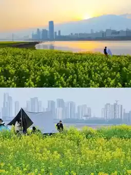 ⭐ Jiuzhou Park: Nearly 200 mu of rapeseed flower fields bloom among the city's high-rise buildings, like a golden carpet. The initial flowering period begins in late February and early March, and the full bloom period begins in mid-to-late March. The flowering period lasts for about 45 days. The park also has various facilities such as farmland viewing platforms, Qifengtai, and viewing towers, allowing citizens to experience the fun of farming in the city.
