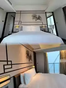 2. The room is reasonably laid out and fully equipped. The soft and comfortable bedding, the master bathroom with double basins, and the large round bathtub can all relieve your physical fatigue.