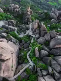 Start from the 985 plank road, walk to the entrance near the tropical fish to enter the branch line, pass the attractions such as Stepping on the Universe and On the Gold List and climb up to the Genting Plank Road. Along the plank road, you can visit attractions such as the Twin Snakes Coming Out of the Cave - Dinghai Shenzhen - Mother Earth - Monkey King Coming Out of the Mountain - Moyun Cave - Girl Dressing - Old Woman Protecting Grandson, etc. Finally, go down the mountain from the Wizard of Oz branch line and return to the cable car station along Route 211.