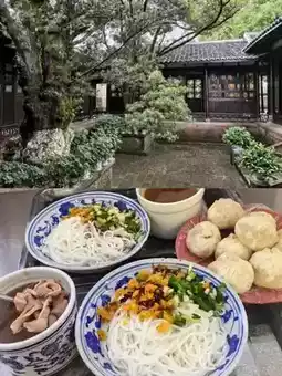*Mixed Rice Noodles + Claypot Soup*: Silky noodles tossed with chili oil & pickled radish, paired with slow-cured century egg-pork broth – locals' soul food!