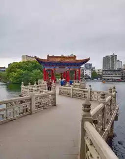 Nanchang Bayi Park is located in the East Lake in the center of Nanchang City, Jiangxi Province. It is bordered by Minde Road to the north, Zhongshan Road to the south, and Supu Road to the east. The total area is 23.7 hectares, with 6.4 hectares of land. The park is lush with trees and blooming flowers. It can be divided into two parts: the lake area and the land area. Major attractions include East Lake, Baihuazhou, Baihua Bridge, Guan'ao Pavilion, Su Causeway, Supu, Shuimuqing, Huaguan, as well as Jiuqu Bridge, Huxin Pavilion, Boat Dock, Cultural Relics Lawn Square, and more than ten stone men and stone beasts from the Jin, Tang, Song, Yuan, Ming, and Qing dynasties.