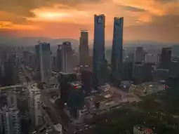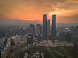Watch the sunset and capture stunning aerial photos at the city center of Honggutan, Nanchang.