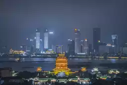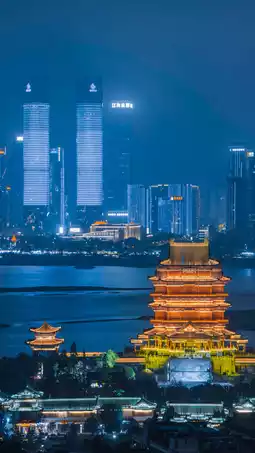 ✔️Riverside platform: Shoot during the blue hour at dusk, when the Yangtze River reflects the pavilion’s lights perfectly