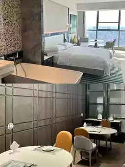 🏨 As soon as you step into the hotel lobby, you're greeted by warm yellow lighting and wooden decor, creating a cozy atmosphere. The rooms are clean and tidy, decorated with care. The bedding is soft and comfortable, the bathroom has a separate shower and toilet, and there's even a smart voice system. You can control the lights and air conditioning with just your voice – talk about high-tech!💡