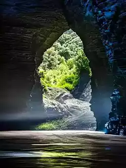 Chasing Tyndall beams! Tried to pose the kid like a "divine maiden," but he sneezed into the light 🤧. Moss-covered stalactites turned us into "four-legged climbers." The security guard laughed: "You’re more agile than monkeys!"