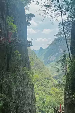 2. Camel Peak and Tianmen Cave: For a challenge, climb the 75-degree steep Camel Peak using both hands and feet. From the top, overlook the 80-meter vertical drop of Tianmen Cave and the spectacular karst peak forest, giving you a huge sense of accomplishment.