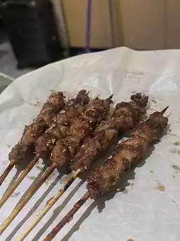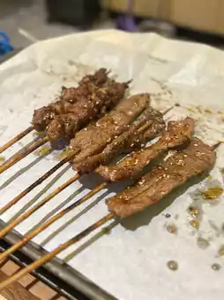 The hot yellow beef is freshly skewered and grilled. The meat is rich and oily