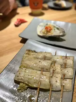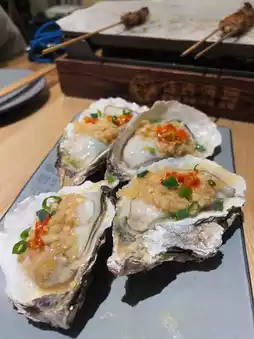 There are grilled oysters, eel, large squid, bacon and even lobster