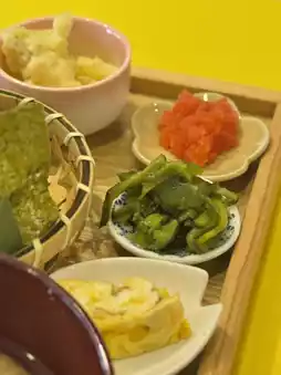 The wide variety of side dishes makes it easy to eat the onigiri. 🍙