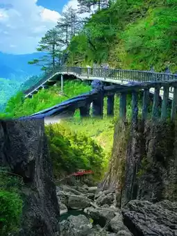 A must-visit 5A-level red leaf viewing spot, beautiful like an ink painting all year round! It’s recommended to take the sightseeing bus to Xianglu Mountain, then hike down to see the Shibayue Tan Waterfall Group. Remember to wear non-slip shoes~ At the foot of the mountain, Tieluba Village has many farm stays. Try the Nanjiang yellow goat hot pot, which is warming and delicious.