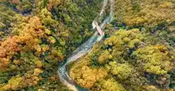 3 km hiking corridor is amazing! Red leaves float on the turquoise pool, strange rocks hide in the forest. Walk slowly, every step is a scene.