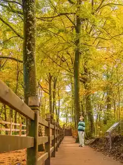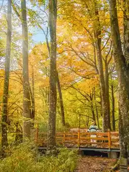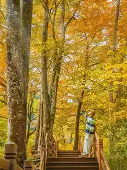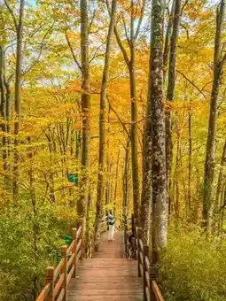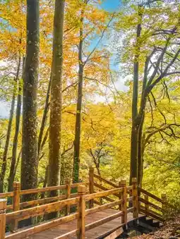 The plank road winds through tens of thousands of acres of colorful forest. The 2-kilometer trail seems to come with an "oil painting filter." Trees on both sides wear colorful clothes in autumn, sunlight filters through the leaves, and the interplay of light and shadow creates a fairyland.