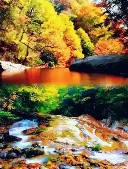 · Natural Gallery: A colorful forest corridor resembling an oil painting.