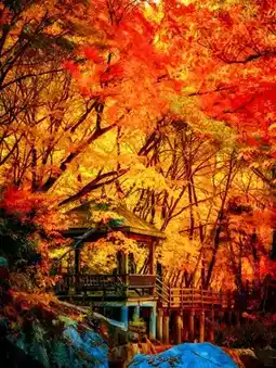 ✨ Key highlights: Natural Gallery, Black Bear Valley, Xianglu Mountain, Langou Bridge. The red leaf scenery here is the most spectacular and a photographer’s paradise. The "Natural Gallery" is praised as one of Sichuan’s most beautiful scenic photo spots, where mountains and trees blend like a watercolor painting; "Black Bear Valley" is the main red leaf viewing area, where streams and red leaves complement each other beautifully; climbing to the top of "Xianglu Mountain" offers a panoramic view of the vast red mountains and layered forests.