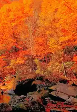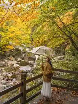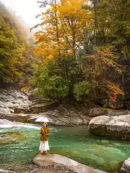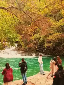 Known as the "Little Jiuzhaigou," streams, clear pools, waterfalls, and colorful red leaves