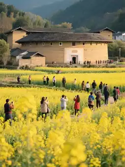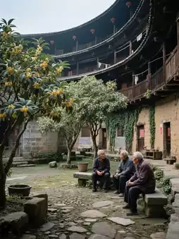 🔹 **Tianluokeng Tulou Cluster**: Don’t just snap photos of the "Four Dishes and One Soup"! Stroll along the stone-paved paths between the Tulou, where you might meet grannies carrying bamboo baskets👵🏻 or even step into a local’s home for a bowl of warm ground tea. At sunset, the entire Tulou glows orange—head to the viewing platform for stunning silhouette shots!