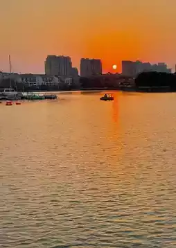 ☑️Be sure to take photos of the sunset on the riverside plank road😃! Super romantic 💕, taking photos before 4 o'clock is like strolling on the beach 🏖! After 4:30, the setting sun shines on the river, and the small boat 🚣♀️ passes through the sparkling river. It’s so beautiful 😻!
