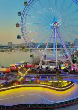☑️Be sure to shoot at the position next to the small train at the entrance of the block😏, with the Ferris wheel🎡 and Sunset Flyer🎡 in the background! The atmosphere in the photos taken is absolutely amazing😱!