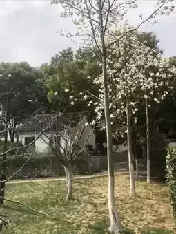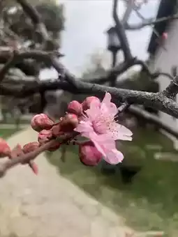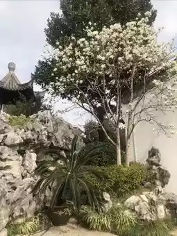 On this visit, the wintersweet had already withered, but the red plum blossoms were still in bloom. Newly budding crabapple blossoms and blooming white magnolias swayed gracefully against the white walls and black tiles. Camellias by the lake were quietly gathering strength, silently watching the three or five people sitting leisurely by the lake.