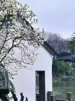 Crouch by the pond and shoot from a low angle. On a sunny afternoon, the light and shadow pass through the carved windows, and the reflection of magnolias, white walls, and black tiles on the water surface resembles an ink painting.