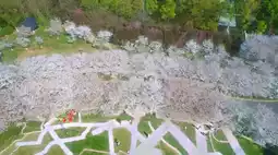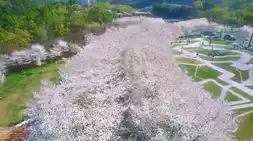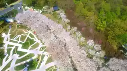High-angle shot: Shoot from a high place to show the magnificence of the cherry blossom forest.