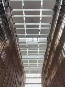 The hotel is like a museum hidden in the city, with details that conceal the cultural context of Jinling. The designer uses a Chinese-style enclosed courtyard as the framework, and the rectangular stone brick exterior walls replicate the texture of the Ming City Wall of Nanjing. The "Moonlight Treasure Box" lobby, constructed of rust stone and steel grating, has lights at night that resemble stars falling into the long river of history. The progressive cascading structure blurs the boundaries between indoor and outdoor spaces. The ten-mile lawn and the bamboo forest along the river introduce nature into the building, and the virtual and real light and shadow of the glass corridor add to the ethereal Zen. The Yue kiln celadon chimes in the center of the lobby are fired using intangible cultural heritage techniques. When struck, the sound is ethereal and resonates with the river, recreating the elegance of the Tang and Song dynasties.