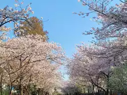 √ Panoramic view of cherry blossom avenue from the second-floor café at the "Paleontology Museum" near the north exit