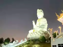 The temple architecture is stunning – a beautiful blend of traditional Chinese design, adorned with intricate carvings, vibrant lanterns, and serene statues. The centerpiece is the grand statue of Guanyin herself, radiating compassion and strength. Devotees and tourists alike stand in quiet reverence, lighting joss sticks, offering prayers, or simply soaking in the atmosphere.