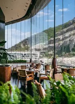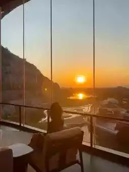 ✨Mingyue Restaurant: Floor-to-ceiling windows, the sun shines in when you eat breakfast, as if you are dining in the clouds~ At sunset, the scenery is so beautiful that you can't bear to blink!