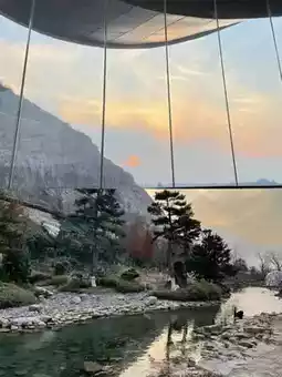 Surrounded by lake views and gardens, the hotel greets you with artificial mountains and waterfalls at the entrance. At night, with the lights on, wearing Hanfu for photos feels like time travel, and guys can snap epic martial arts-style shots too!