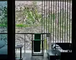 * The highlight was the massive floor-to-ceiling window and private balcony, framing the quarry’s wild beauty as a stunning backdrop, rain or shine.