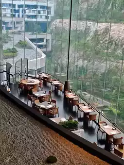 * **Cloud-Top Sanctuary:** The main building appears to "grow" from the quarry cliffs. The lobby sits high above, with floor-to-ceiling windows framing breathtaking panoramic views of the deep pit. When mist swirls, it truly feels like a celestial paradise in the clouds.