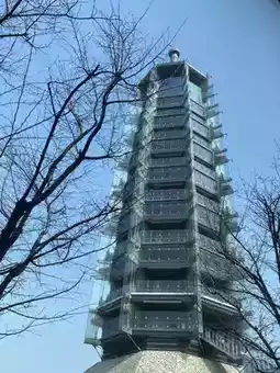 The glazed pagoda of Da Baoen Temple was destroyed during the Taiping Rebellion. The newly renovated pagoda houses Buddhist artifacts and a glass art museum. The pagoda features an octagonal, nine-story structure constructed with five-colored glazed tiles.
