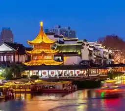 Confucius Temple Qinhuai River Night Cruise: Brightly lit, with ancient-style streets, enjoy a bowl of duck blood vermicelli soup and experience the poetic "Night Tour of Qinhuai."