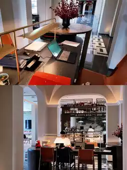 4. Facilities: Outdoor swimming pool, lobby workspace, and Piye Coffee in the lobby.