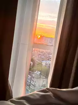 The room I stayed in was spacious and bright, with a very sensible layout. The large windows overlooked the city view, allowing me to see bustling streets and towering buildings during the day. In the evening, I could also enjoy a stunning sunset, with the afterglow of the setting sun casting a warm golden hue over everything in the city. That scene was truly therapeutic. The room was fully equipped, just like a cozy little home, with clearly defined functional areas for the kitchen, living room, and bedroom. Whether for a short stay or long-term residence, it offered convenience and comfort.