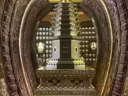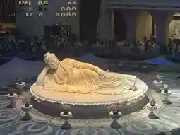 ④ After exiting the Reclining Buddha, follow the signs to the underground palace entrance. Be sure to wear disposable shoe covers, then take the escalator down to the fifth underground level. From there, continue your walking tour upwards. The Buddha's relics are located six levels below the ground floor of the underground palace, accessible only at designated times. The construction of the underground palace is truly remarkable, and it's worth taking a moment to admire the exquisite statues and murals.