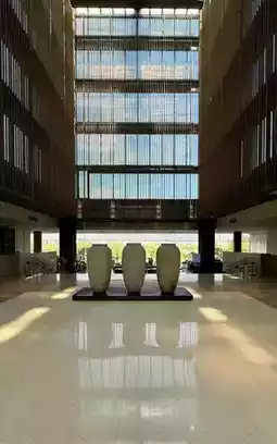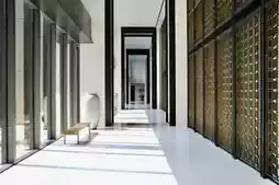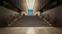 3. Light enters the interior through glass windows and architectural gaps, with shadows flowing and shimmering as time changes. The charm of the ancient capital of Nanjing is also reflected indoors. The designer deconstructed and reassembled the city wall bricks and stones, showcasing them with special stone materials in the hotel lobby. Climbing the steps gives a unique sense of the palace-like ritual of entering an ancient capital. Artworks are everywhere in the public spaces, carrying a historical atmosphere. Various Chinese-style decorative installations enrich the space details, full of charm.
