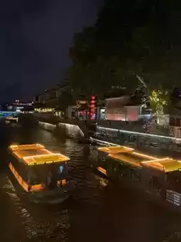 🌉 At night, the lights along the Qinhuai River (秦淮河) are beautifully lit up, the lights reflecting on the shimmering water, feeling like I'm lost in a period drama. This area has many delicious restaurants and typical Nanjing snacks such as salted duck, stinky tofu, and soup dumplings, each of which is fragrant.
