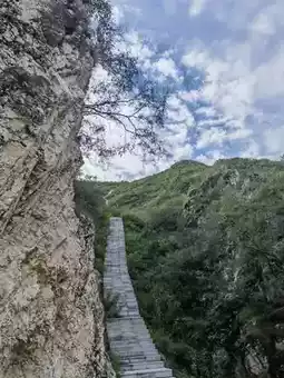 As one of Fuping’s high points, climbing Baicaotuo offers a panoramic view of the entire scenic area’s autumn colors. The dense vegetation here shows a gradient of colors from green to gold to fiery red in autumn.
