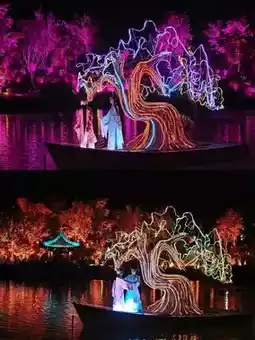 If you have enough time, I strongly recommend heading to nearby 📍 Jinling Small Town from Niushou Mountain at dusk. The pavilions and towers here have a unique charm under the brilliant lights. Whether it’s the exquisite antique-style buildings or the romantic nighttime performances, they are excellent subjects for photography and will allow you to capture another set of photos with a completely different style.
