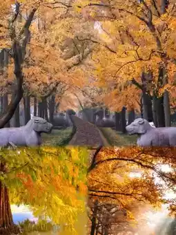 1. Shixiang Road Sacred Way — a 615-meter-long avenue of divine beasts, featuring lions, xiezhi, camels, qilin, horses… walking here feels very ceremonial 🦁