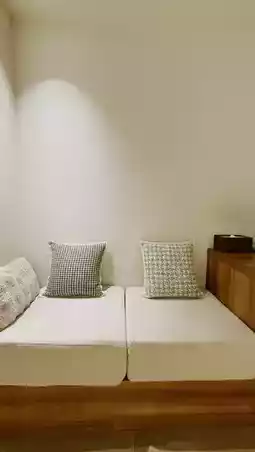 • Super love the tatami sofa area! Soft cushions and a small tea table by the floor-to-ceiling window make it perfect to lounge and watch projections on weekends—so chill (secretly, photos here come with a natural soft light filter 💫)