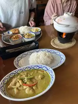 The food is authentic Thai cuisine! The portions are generous, and if you can't finish your meal, you might be able to take it home—just ask the staff. Reservations are essential for lunch on weekends and holidays!