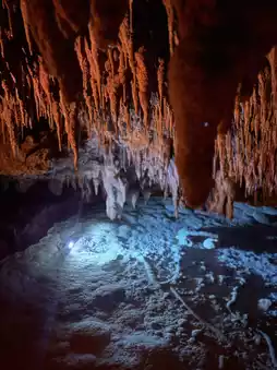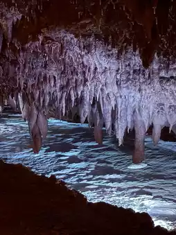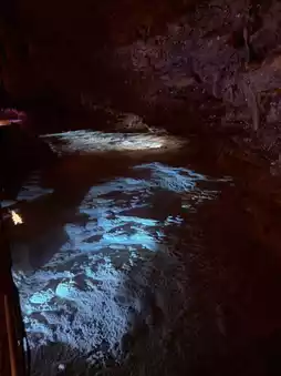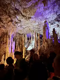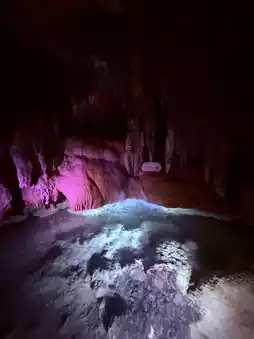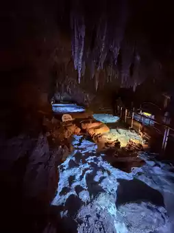 Currently, only one-fifth of the cave is open to the public, but the journey through the underground passage is full of surprises. You'll first encounter the majestic stalagmites and stone pillars, followed by a section resembling human-like Buddha statues. As you venture deeper into the subterranean stream area, the dim lighting heightens your auditory senses, allowing you to fully appreciate the sound of flowing water. The final section features stunning light decorations, where the underground stream reflects blue light, and the stalactites are illuminated with orange or purple hues, creating a dreamlike and magical experience. The entire walking path is designed to be completed in about 1.5 hours, but if you take your time to snap photos and explore, it might take around an hour.